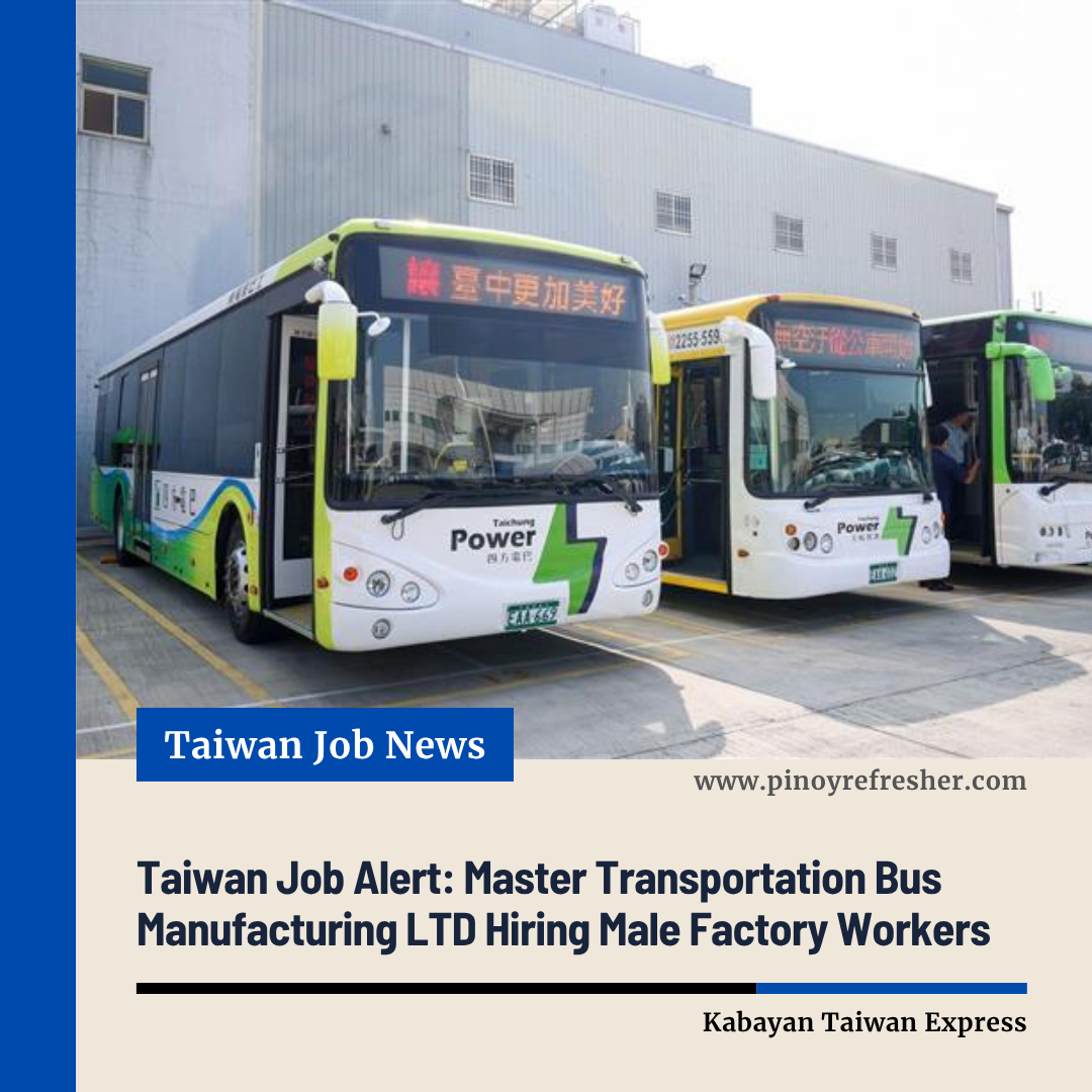 Taiwan Job Alert: Master Transportation Bus Manufacturing LTD Hiring Male Factory Workers ๐น๐ผ Filipino workers with automotive skills now have a golden overseas opportunity as