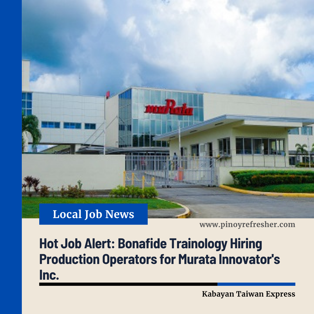 ๐จ Hot Job Alert: Bonafide Trainology Hiring Production Operators for Murata Innovator’s Inc. in Batangas! Filipino job seekers looking for a rewarding career in manufacturing