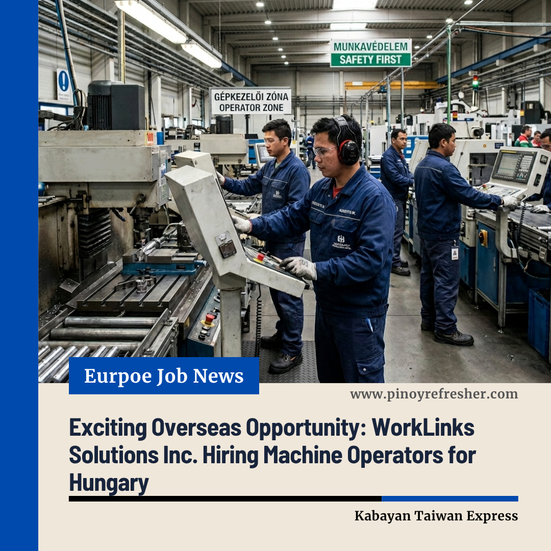 Exciting Overseas Opportunity: WorkLinks Solutions Inc. Hiring Machine Operators for Hungary ๐ญ๐บ Filipino skilled workers looking to advance their careers abroad now have a promising