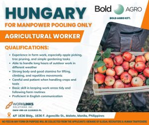 Are you an agricultural worker looking for opportunities abroad? Bold Agro, in partnership with Work Links Solutions Inc., is now conducting manpower pooling for skilled agricultural workers bound for Hungary. This initiative aims to match hardworking individuals with reputable farms looking for dedicated farm workers. ๐ญ๐บ๐ฑ