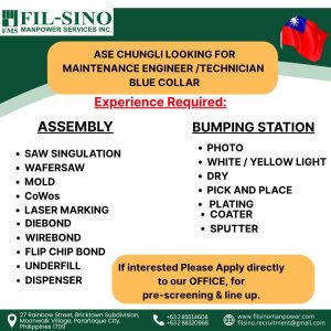 ASE Chungli Hiring Maintenance Engineer/Technician for Semiconductor Operations πβοΈ