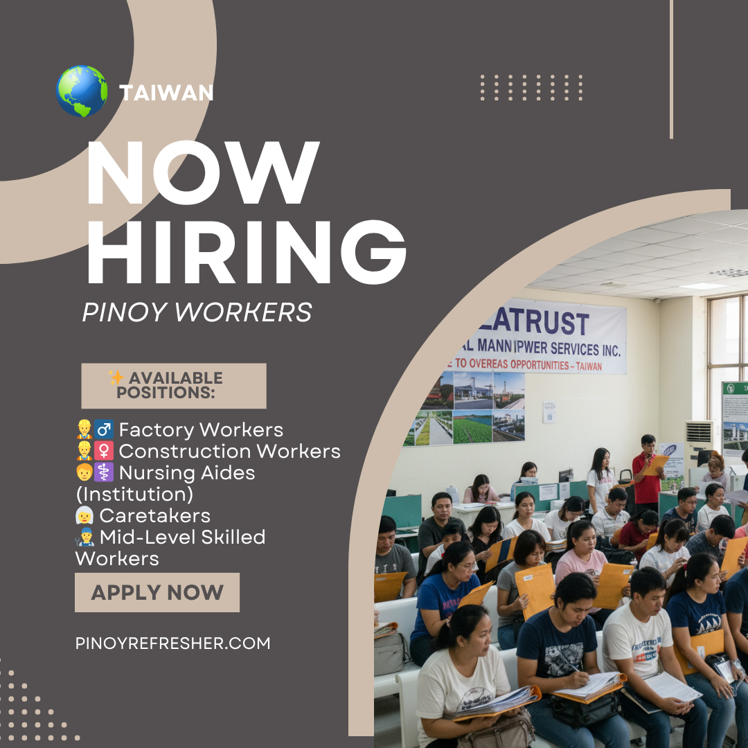 Job Opportunities in Taiwan through ManilaTrust International Manpower Services Inc. ManilaTrust International Manpower Services Inc. is currently offering multiple overseas employment opportunities in Taiwan for
