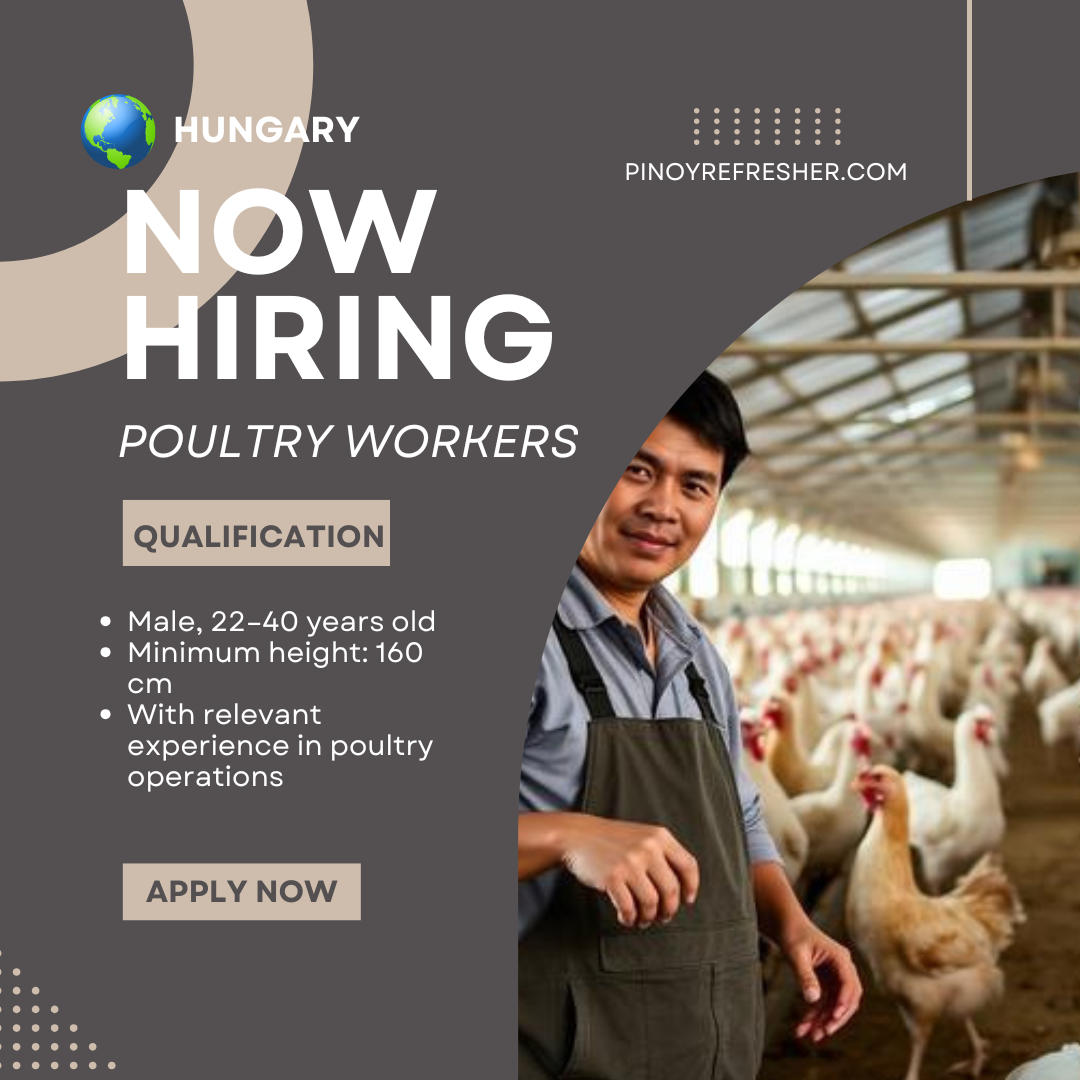 ππΊ Now Hiring: Poultry Workers for Hungary ππΊ Grand Placement & General Services Corp. is accepting applicants for POULTRY WORKER positions in Hungary! πΉ Position:
