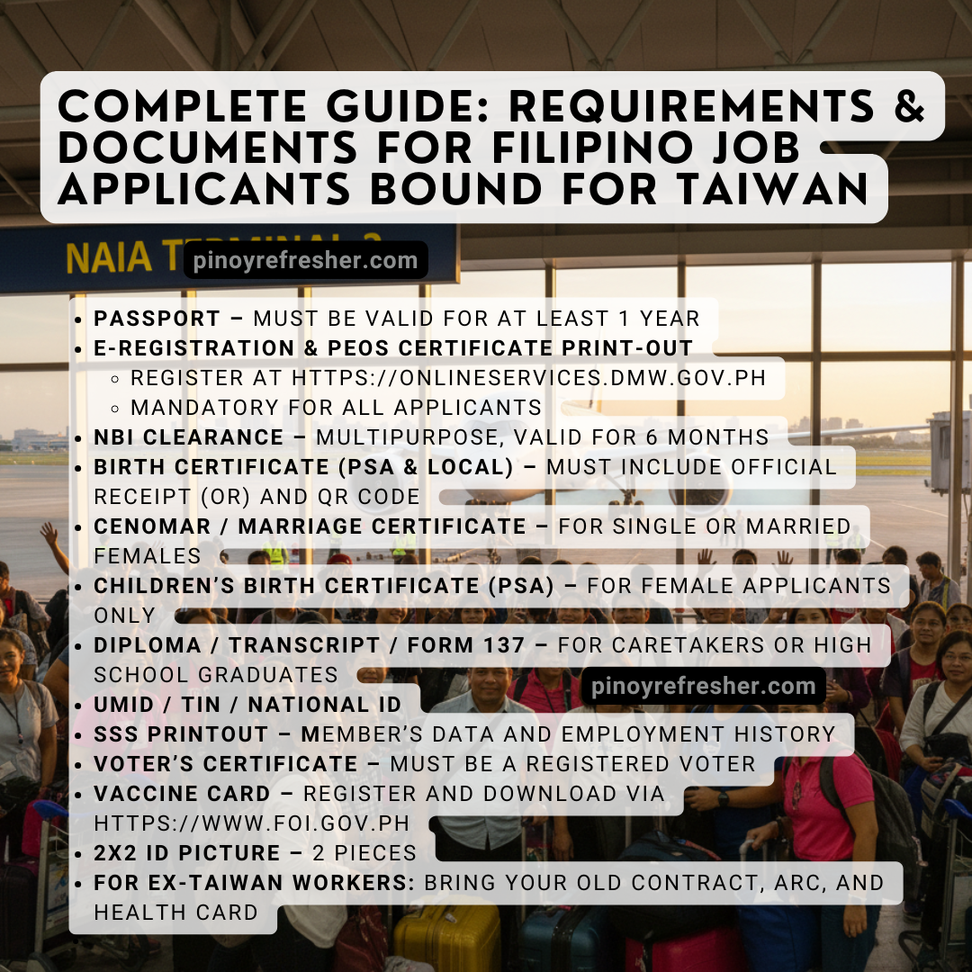 🇹🇼 COMPLETE GUIDE: REQUIREMENTS & DOCUMENTS FOR FILIPINO JOB APPLICANTS BOUND FOR TAIWAN ✈️ Planning to Work in Taiwan? If you’re among the many Filipinos