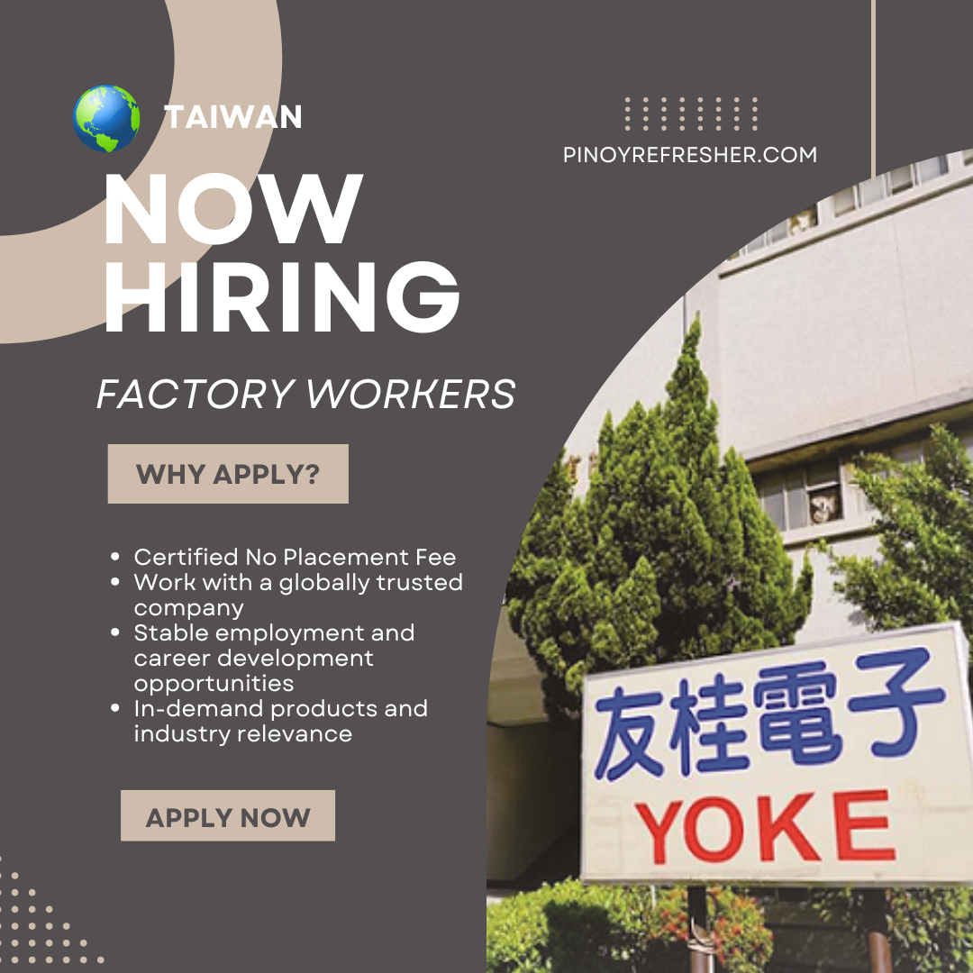 🚨 Manpower Pooling: Factory Operators for Taiwan 🚨 Attention Applicants: This is for manpower pooling purposes only. JS Contractor is seeking qualified candidates to work