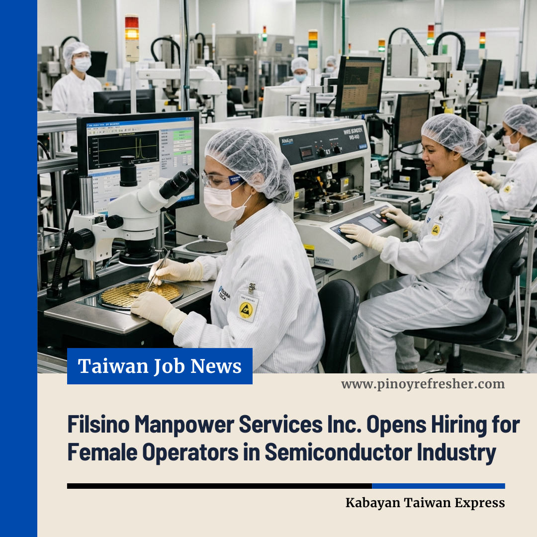 🇹🇼 100 Factory Workers Needed for Taiwan: No Fees, Interview Set in Manila Filipino job seekers eyeing overseas employment have a new opportunity as Chipbond