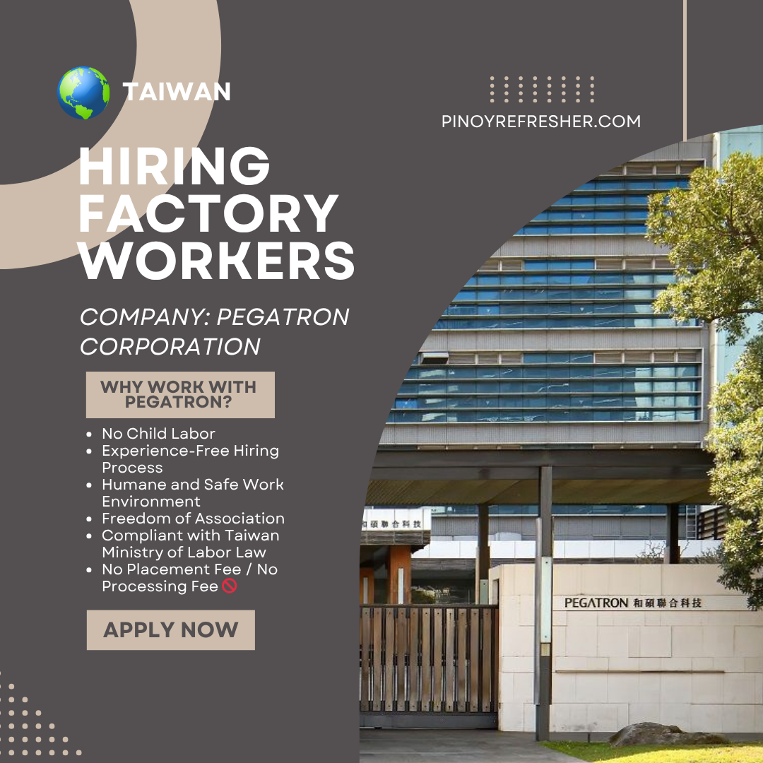 Now Hiring: Join Pegatron Corporation in Taiwan! Looking for an exciting career opportunity abroad? Pegatron Corporation, a leading technology company in Taiwan, is now hiring