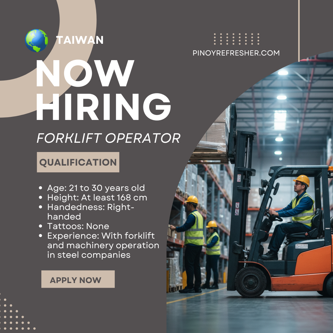 β¨ Exciting Opportunity: Hiring Forklift Operators for TaiwanMaruko International Corporation Are you an experienced forklift operator looking to work abroad? Maruko International Corporation is currently