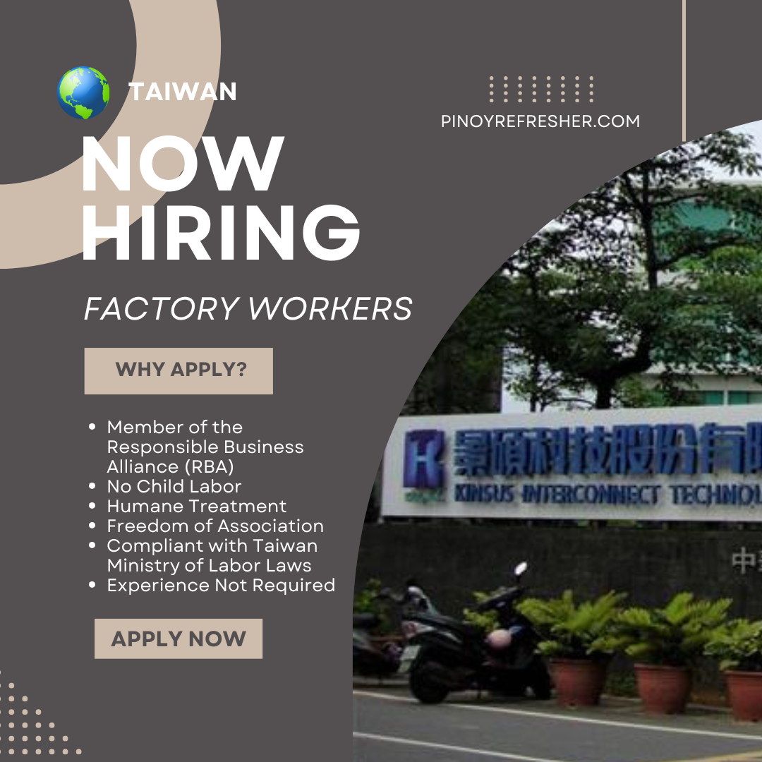 🇹🇼 TAIWAN FACTORY HIRING 🇹🇼✨ Apply now and work abroad! ✨ 🚫 NO PLACEMENT FEE🚫 NO CHARGE POLICY 📅 INTERVIEW DATES❗ February 24 & February