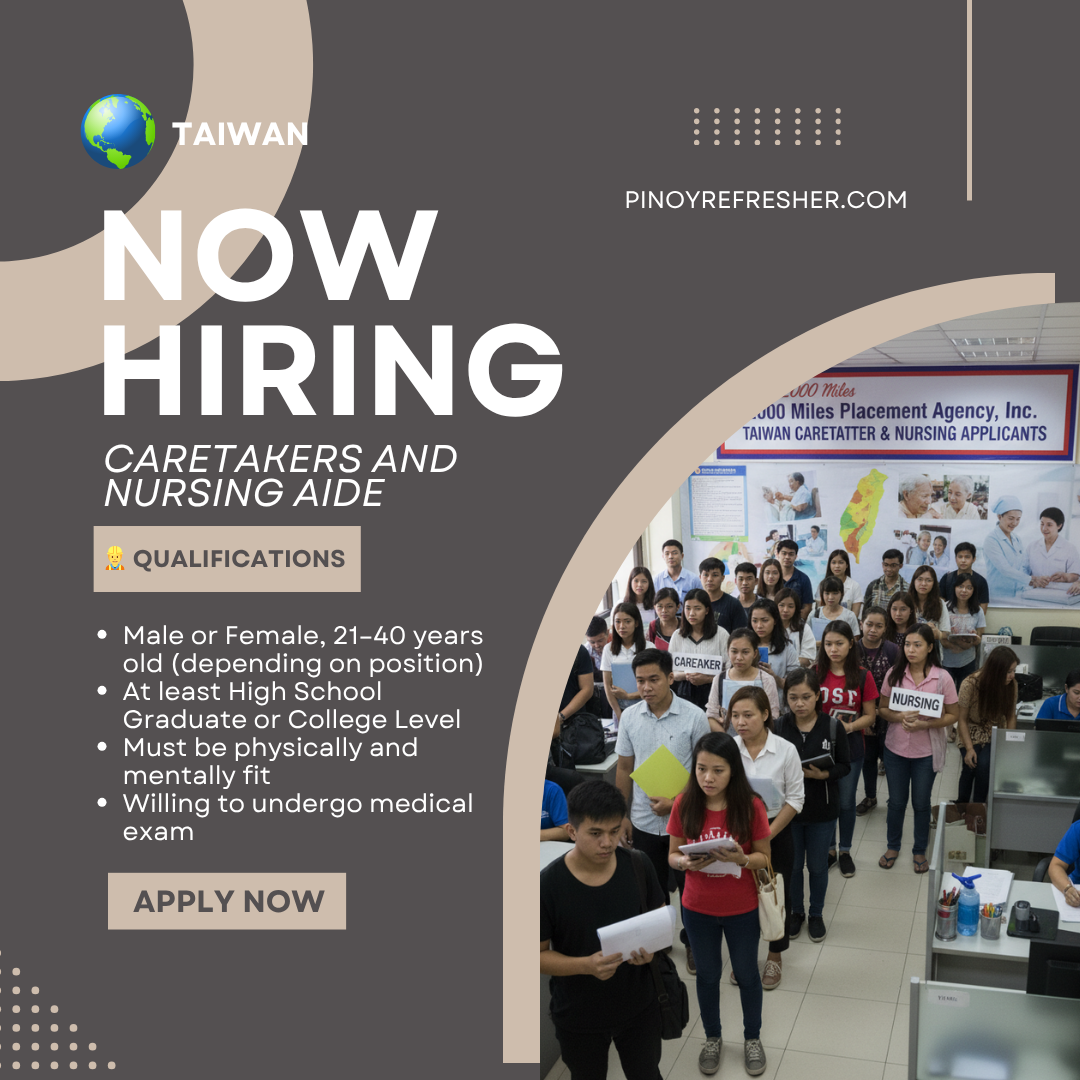 🇹🇼 URGENT HIRING FOR TAIWAN! Caretakers 📋 Agency: 2000 MILES PLACEMENT AGENCY, INC.🛫 Bound to: TAIWAN✅ Accredited by the Department of Migrant Workers (DMW) 💼