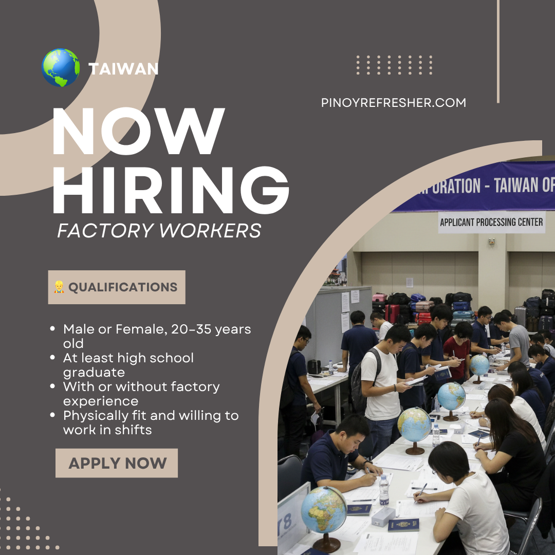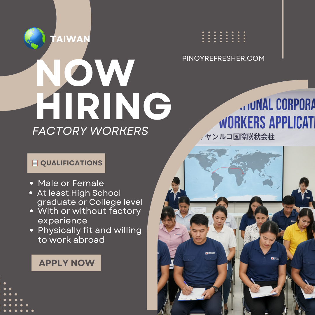🇹🇼 HIRING FACTORY WORKERS FOR TAIWAN! Apply through JAPAN MARUKO INTERNATIONAL CORPORATION — a licensed and accredited Philippine recruitment agency offering legitimate job opportunities for