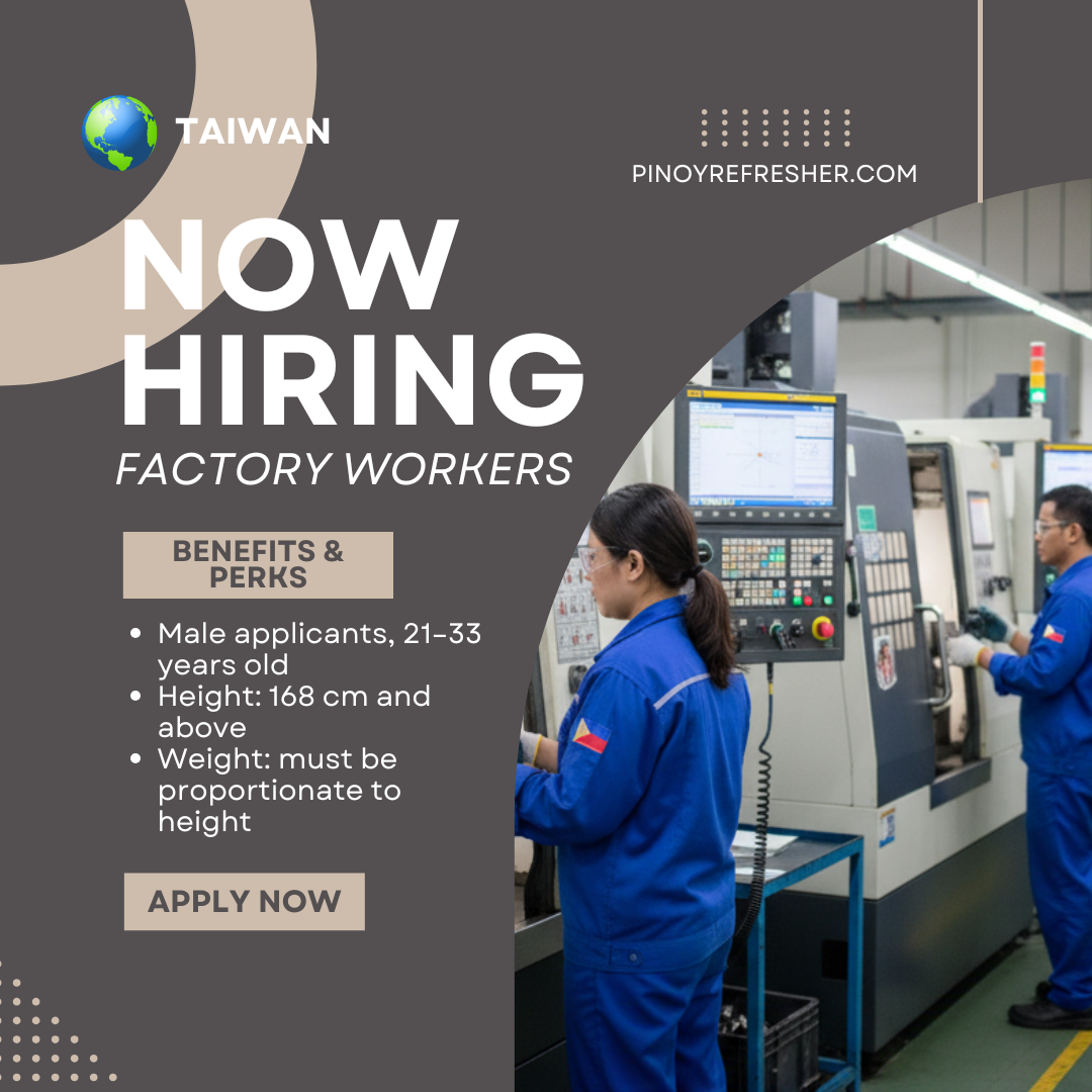🇹🇼 NOW HIRING: CNC LATHE MACHINE OPERATORS – TAIWAN 🇹🇼 Japan Maruko International Corporation is urgently hiring Male Factory Workers to work as CNC Lathe