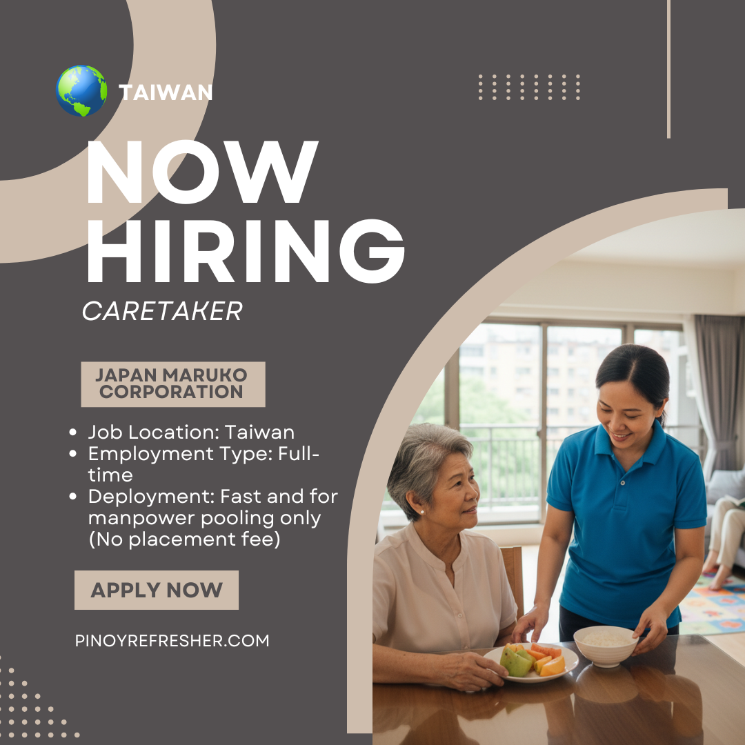 š¹š¼ Hiring Caretakers Bound for Taiwan Japan Maruko International Corporation Japan Maruko International Corporation is now accepting applications for Caretakers bound for Taiwan. This is