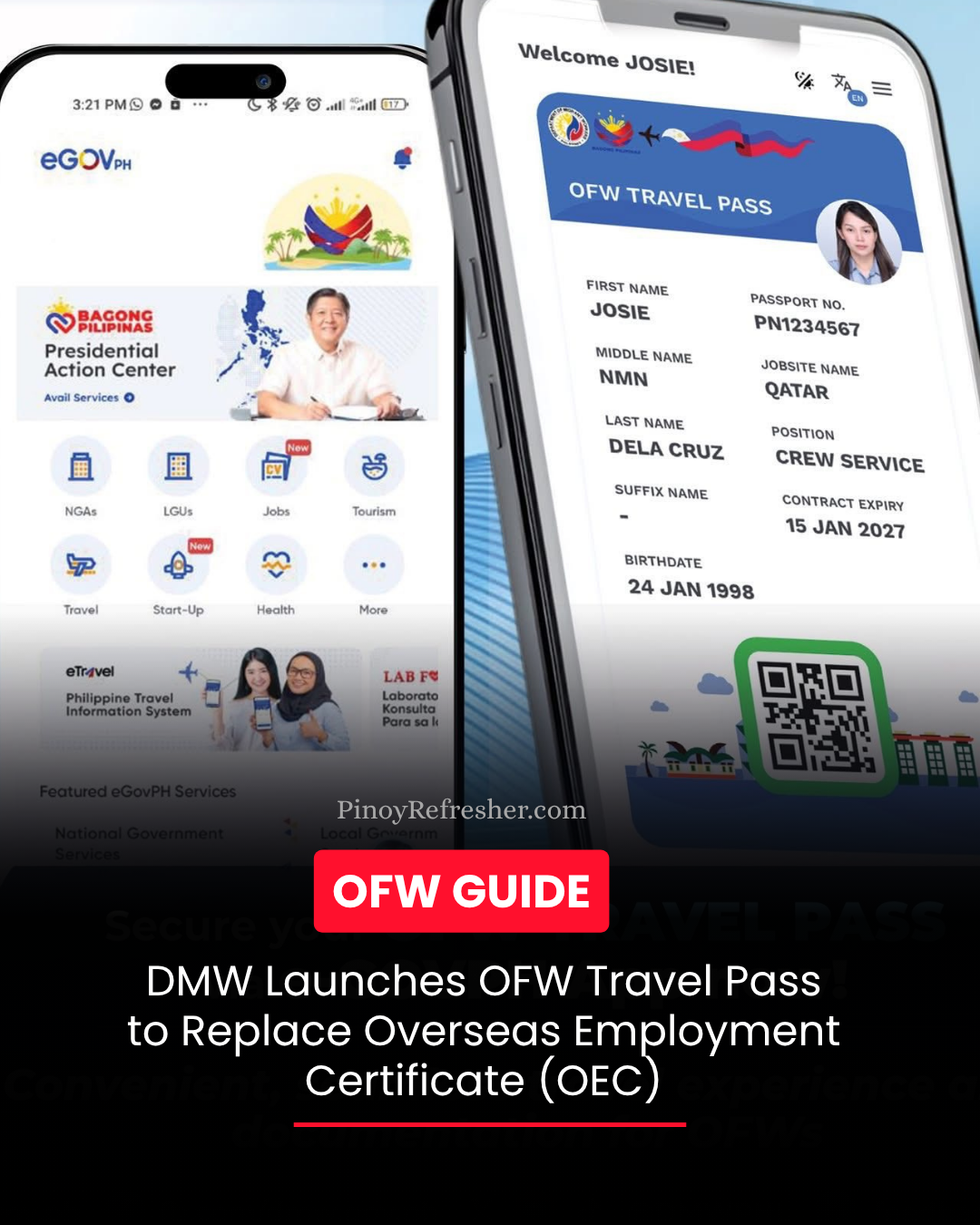 MANILA, Philippines — A major change is coming for Overseas Filipino Workers (OFWs). In line with President Ferdinand R. Marcos Jr.’s directive to digitize and streamline government transactions, the Department of Migrant Workers (DMW) has officially launched the OFW Travel Pass, replacing the long-used Overseas Employment Certificate (OEC).