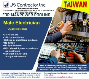 🔧 HIRING: ELECTRICIAN – TAIWAN