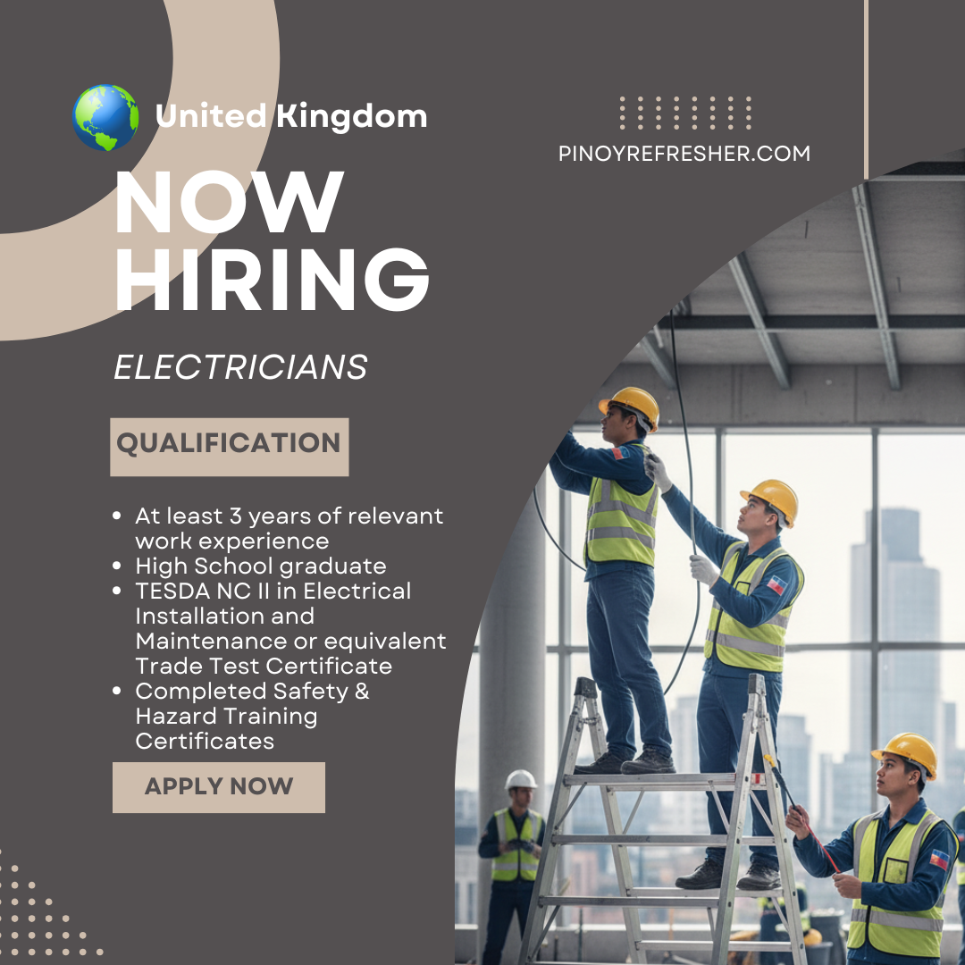 CAS Recruitment UK Limited is urgently seeking experienced and qualified Electricians to join their team in the United Kingdom.
