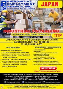 Manila, Philippines — The Prudential Employment Agency, Inc., in partnership with Japanese employers, is now accepting applications for the Industrial Packaging Technical Intern Trainee Program (TIP), accredited by the Life Cooperative Business Association (LCBA). This program offers a rare chance for Filipino workers to gain international experience, earn a competitive salary, and develop technical skills in Japan.
