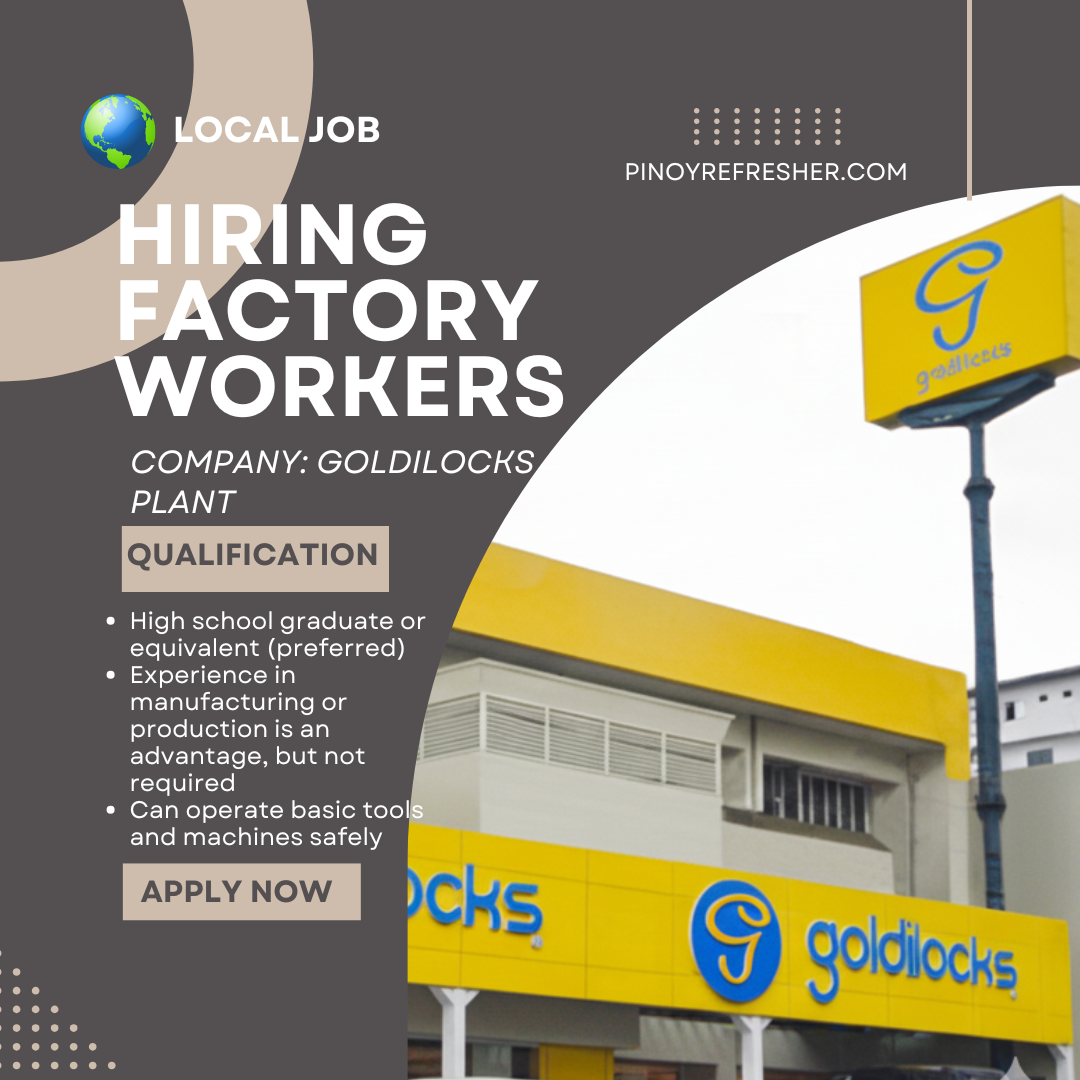 #FactoryWorkerJobs #MandaluyongHiring #GoldilocksJobs #PeopleFirstCooperative #PhilippineJobs #NowHiring #JobAlertPH