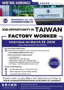 Factory Worker Hiring for GlobalWafers in Taiwan – Interview on March 25, 2026