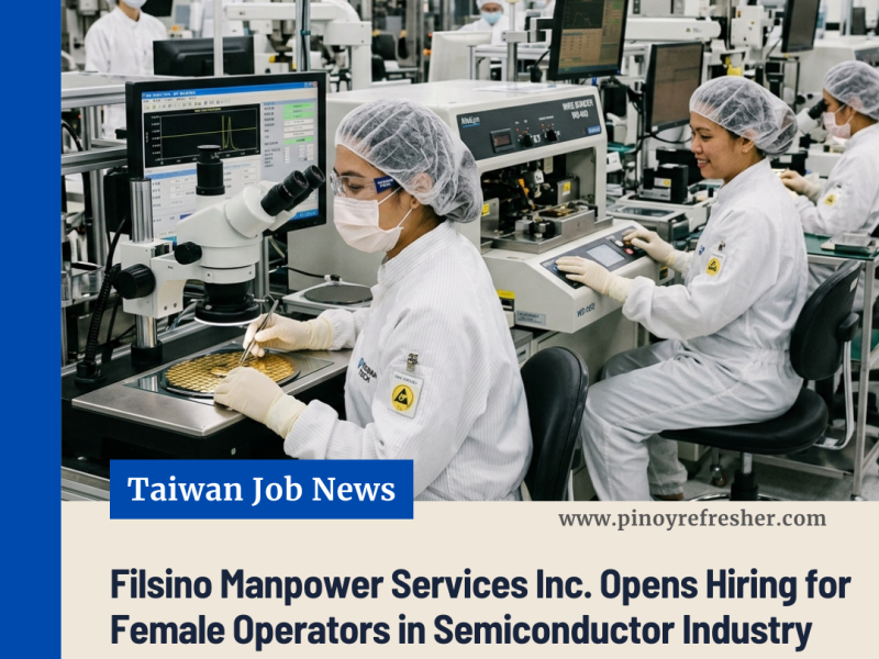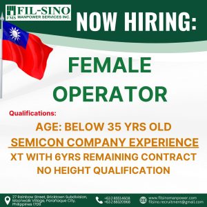 Great news for female job seekers in the semiconductor industry! Filsino Manpower Services Inc. has officially announced an opening for a Female Operator position, offering a promising career path in the fast-growing electronics and semiconductor sector. πΌβ¨