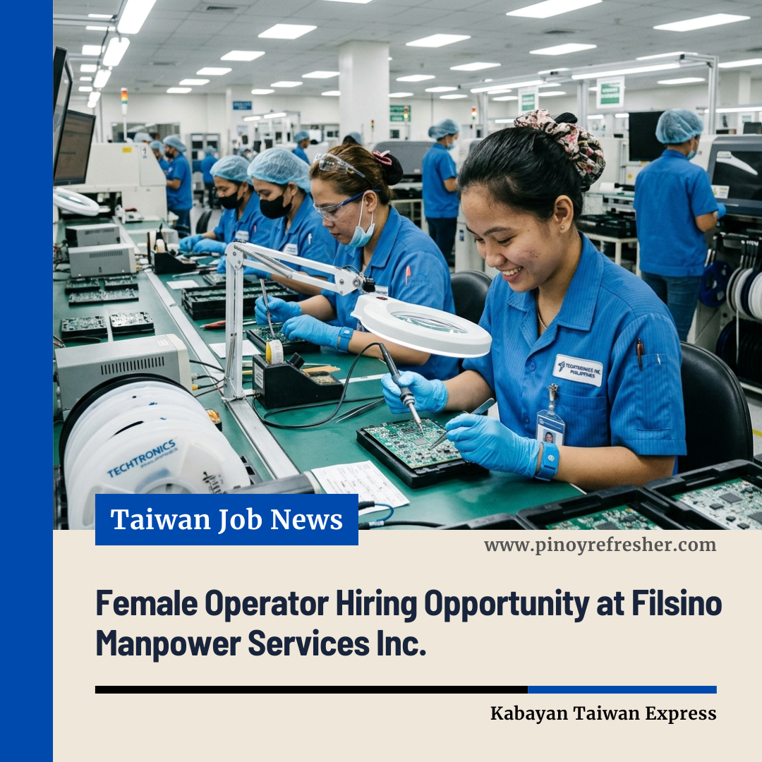 π Female Operator Hiring Opportunity at Filsino Manpower Services Inc. π