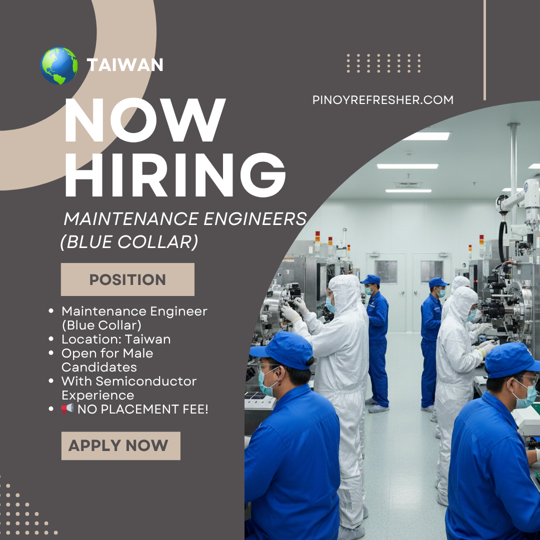 🇹🇼 NOW HIRING: Maintenance Engineers (Blue Collar) — For Taiwan 🇹🇼