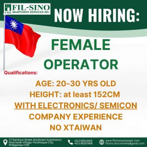 A new employment opportunity is now available as Filsino Manpower Services Inc. announces its latest hiring for Female Operators in the growing semiconductor sector. The initiative aims to empower women by providing access to stable and skill-based employment opportunities in electronics manufacturing.