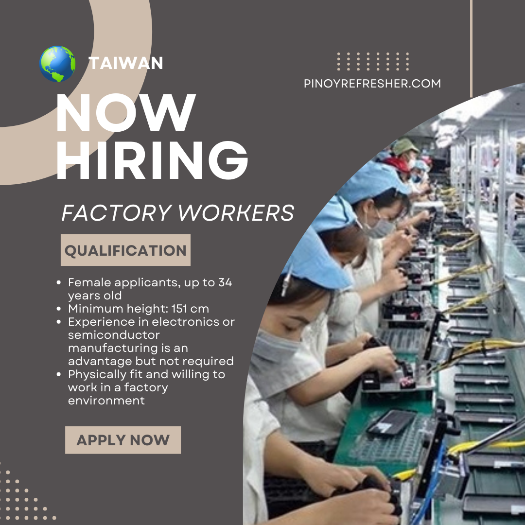 This hiring initiative offers aspiring overseas workers the chance to be part of Taiwan’s dynamic manufacturing industry while working with a licensed and reputable recruitment agency committed to transparency, fairness, and professionalism.