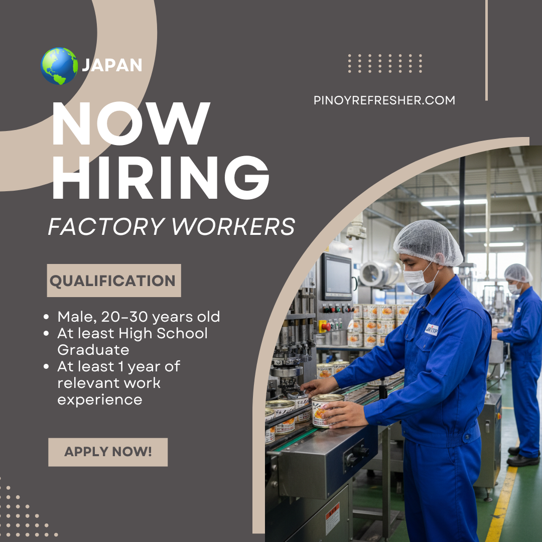 Prudential Employment Agency, Inc. (POEA License No. POEA-061-LB-070722-R) is currently hiring Can Seaming Workers for Canned Food Production under the Technical Intern Trainee Program (TITP), bound for Japan.