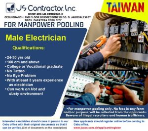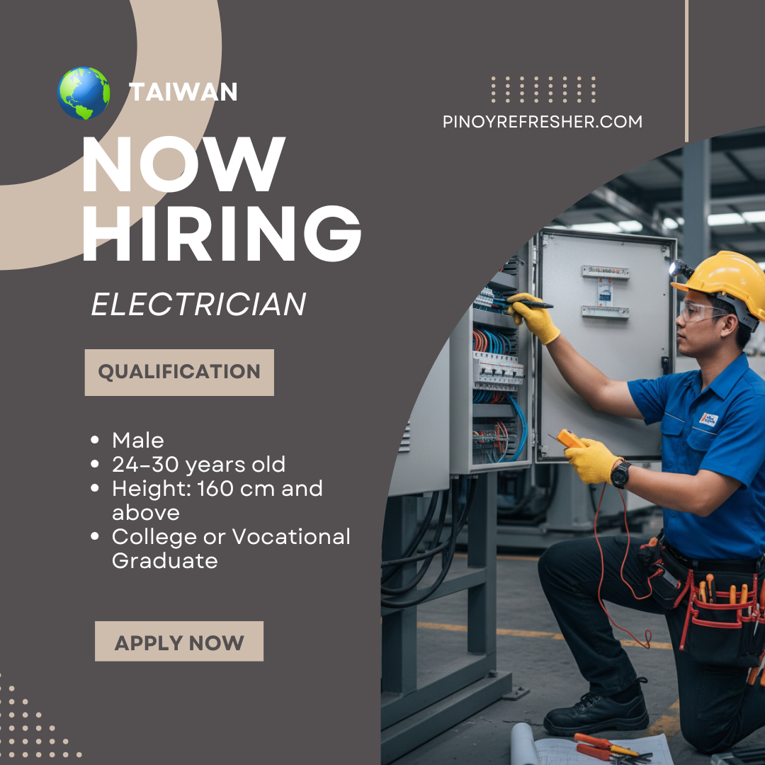 🔌 HIRING: ELECTRICIAN – TAIWAN