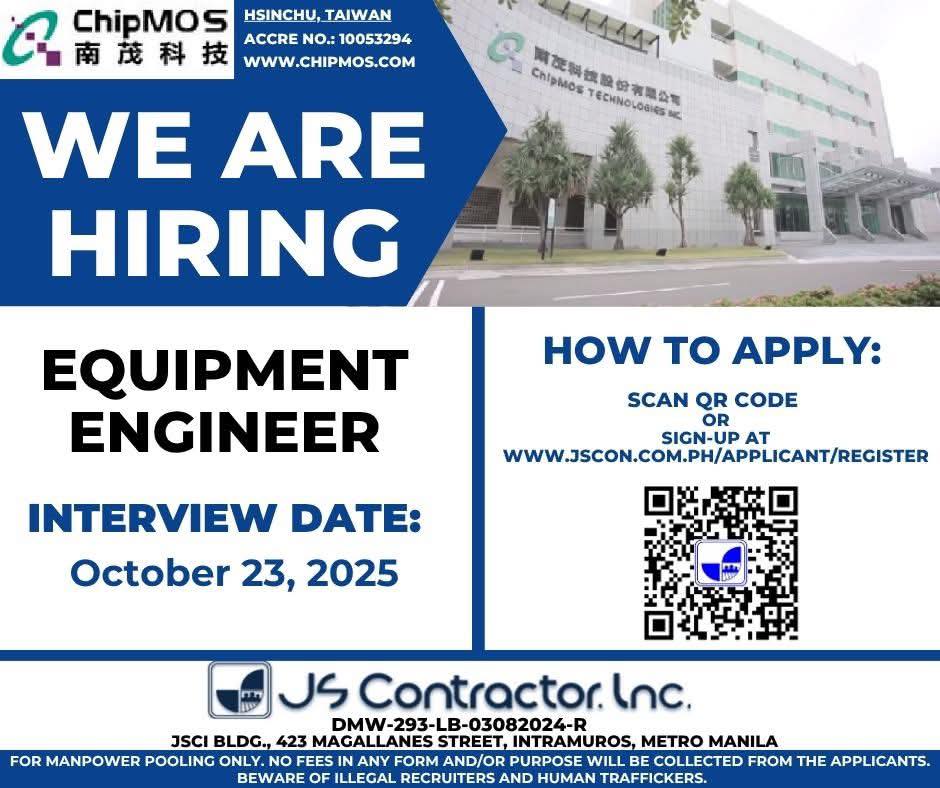 🇹🇼 HIRING EQUIPMENT ENGINEERS