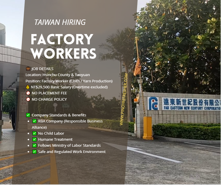 🇹🇼 TAIWAN CLOTH / YARN FACTORY HIRING!