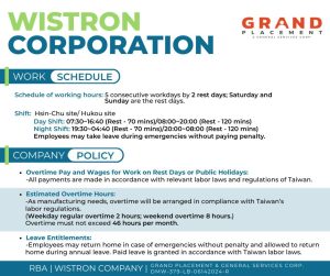 Are you looking for a stable opportunity in the manufacturing industry? Wistron Corporation, a global electronics manufacturer, is now hiring Factory Workers for its operations in Hsinchu, Taiwan.