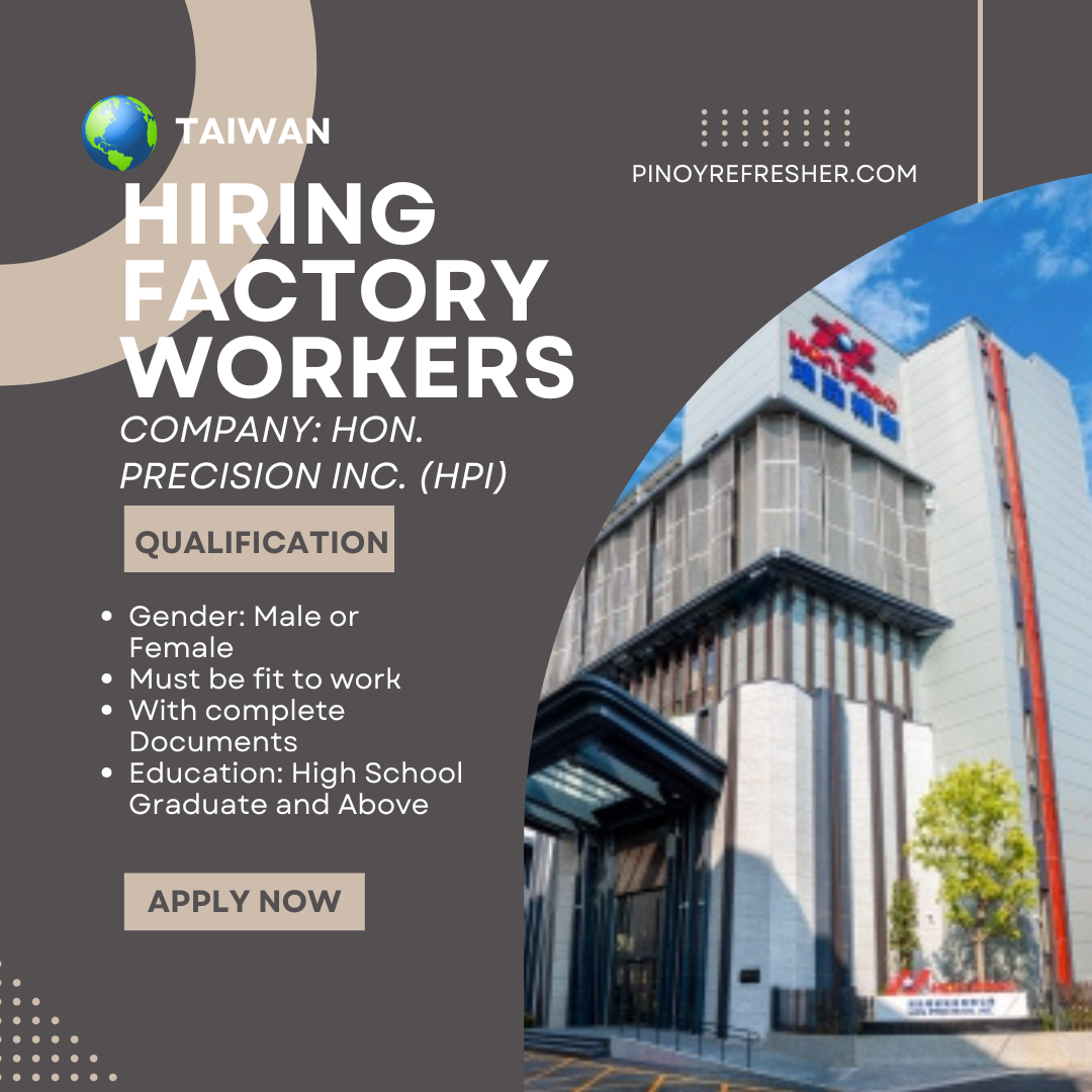 Hiring Factory Workers – Hon. Precision Inc., Taiwan