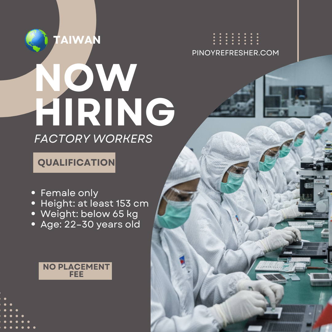 Now Hiring: Female Factory Workers for Taiwan – Apply Through MIP International Manpower Services Inc.