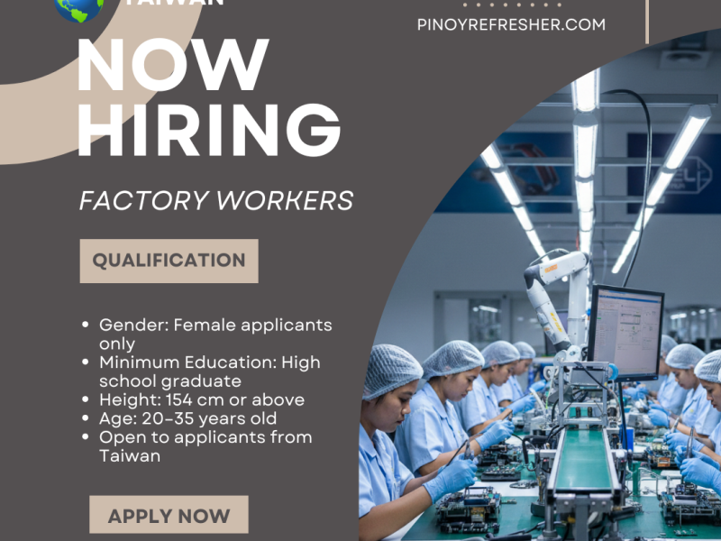 Taiwan remains one of Asia’s top destinations for skilled factory workers, offering stable employment, competitive salaries, and excellent working conditions. Tekscend Photomask ChungHwa Inc., a reputable electronics and semiconductor company, is seeking qualified female factory workers to join its growing workforce.
