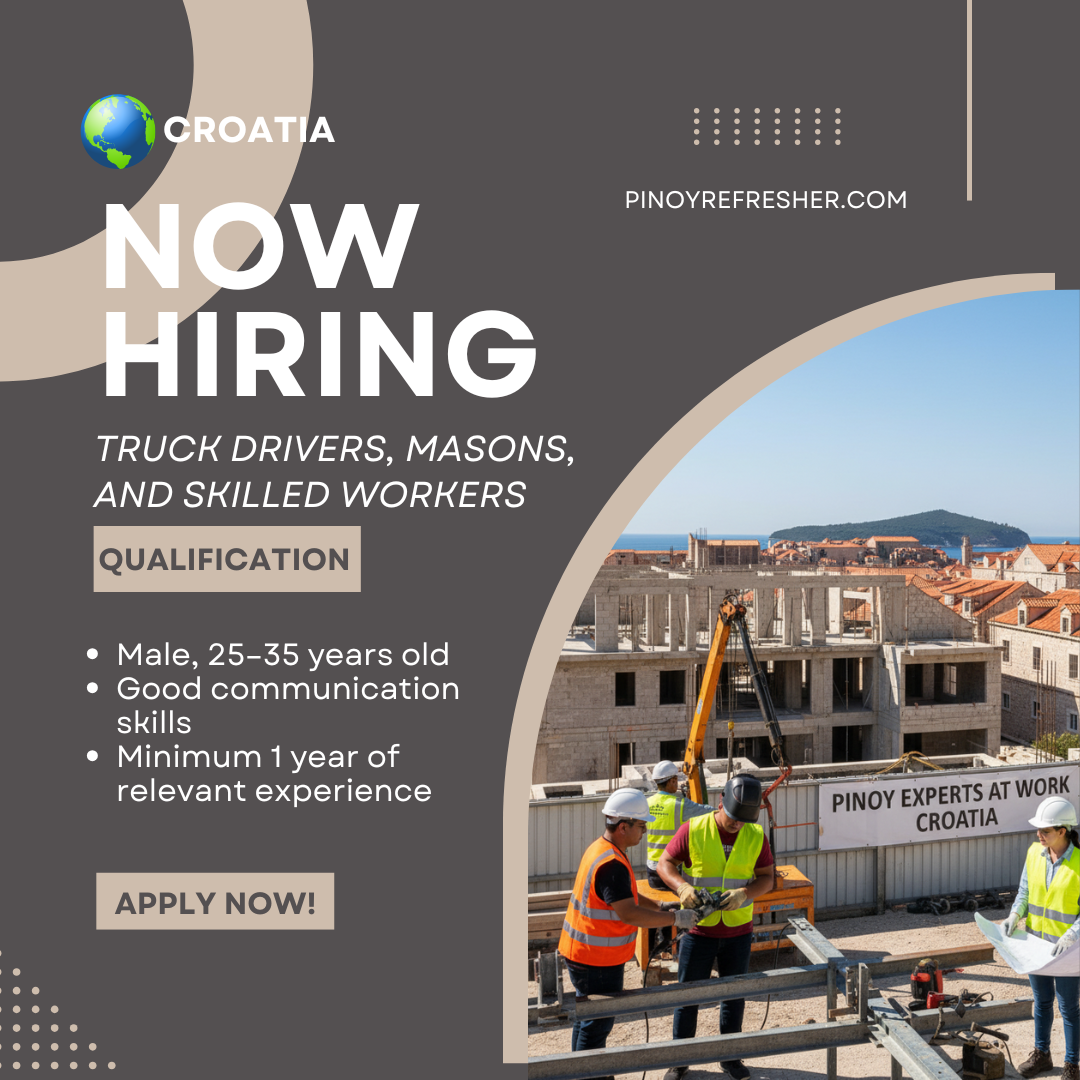 Placewell International Services Corp. (DMW License No. 314-LB-05202224-R) is now accepting applications for Skilled Workers bound for Croatia, Europe!
