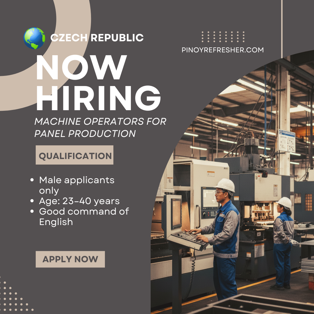 🏭 Job Opportunity in Czech Republic: Machine Operators (Panel Production) – Manpower Pooling 🇨🇿