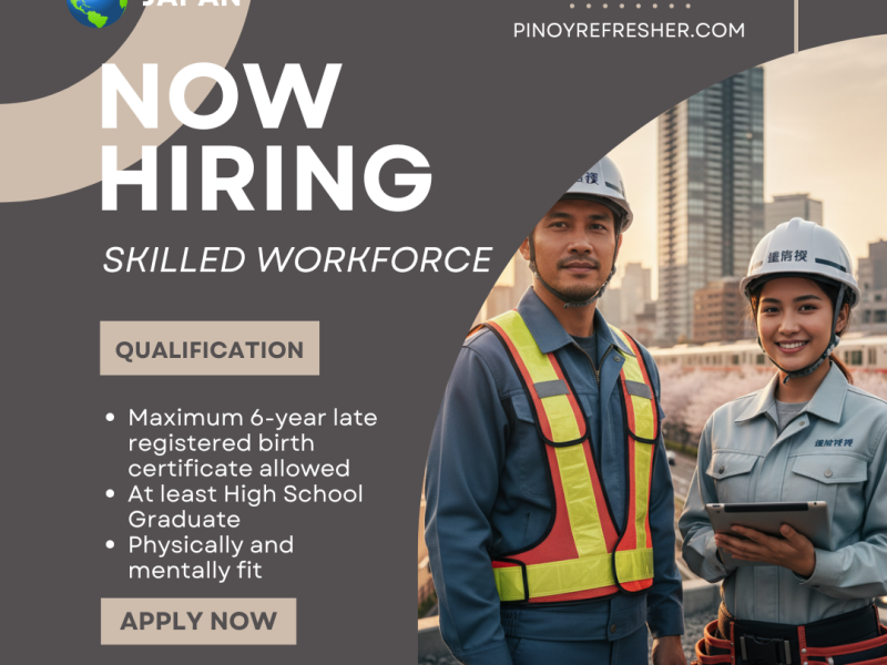 Magandang araw Kabayan, salamat sa inyong pagbisita sa Pinoy Refresher’s website. Nais lamang po namin linawin na ang Pinoy Refresher ay WALANG AGENT at kailan man ay hindi kami naging agent ng mga agency at kahit Piso ay hindi po kami naniningil, Libre po ang aming serbisyo para sa mga Kababayan natin. Hindi rin kami affiliated sa mga Agencies bound to Taiwan at Japan.