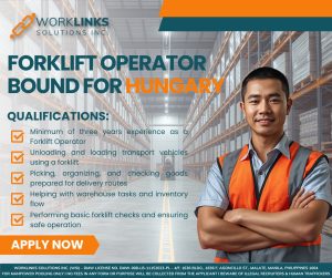 A new overseas job opportunity is now open for skilled Filipino workers as WorkLinks Solutions Inc. announces hiring for Forklift Operators bound for Hungary. This is a great chance for experienced operators to build an international career in the logistics and warehouse sector. 🌍📦