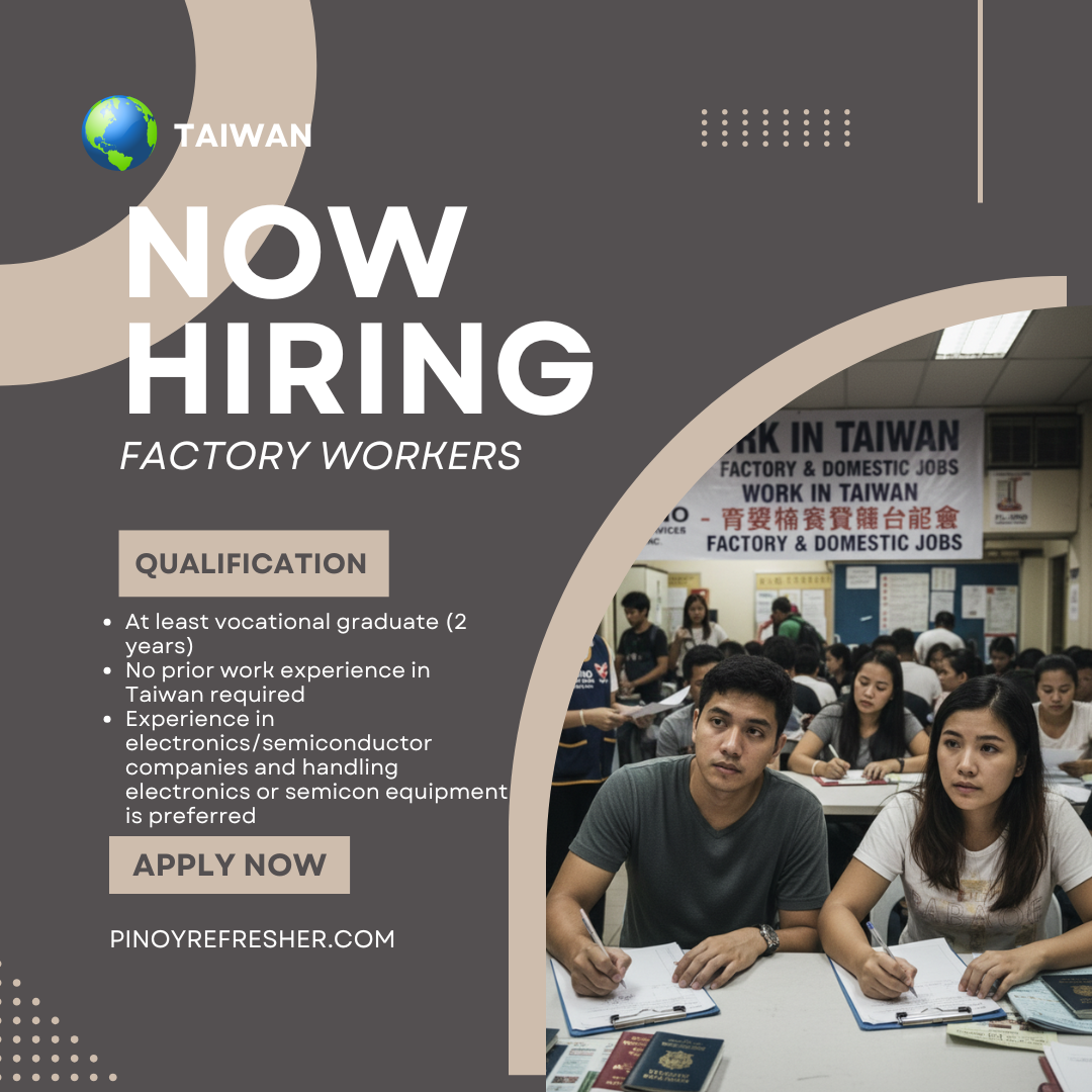 Applicants may report Monday to Friday, 8:00 AM – 5:00 PM for pre-screening and interview lineup.