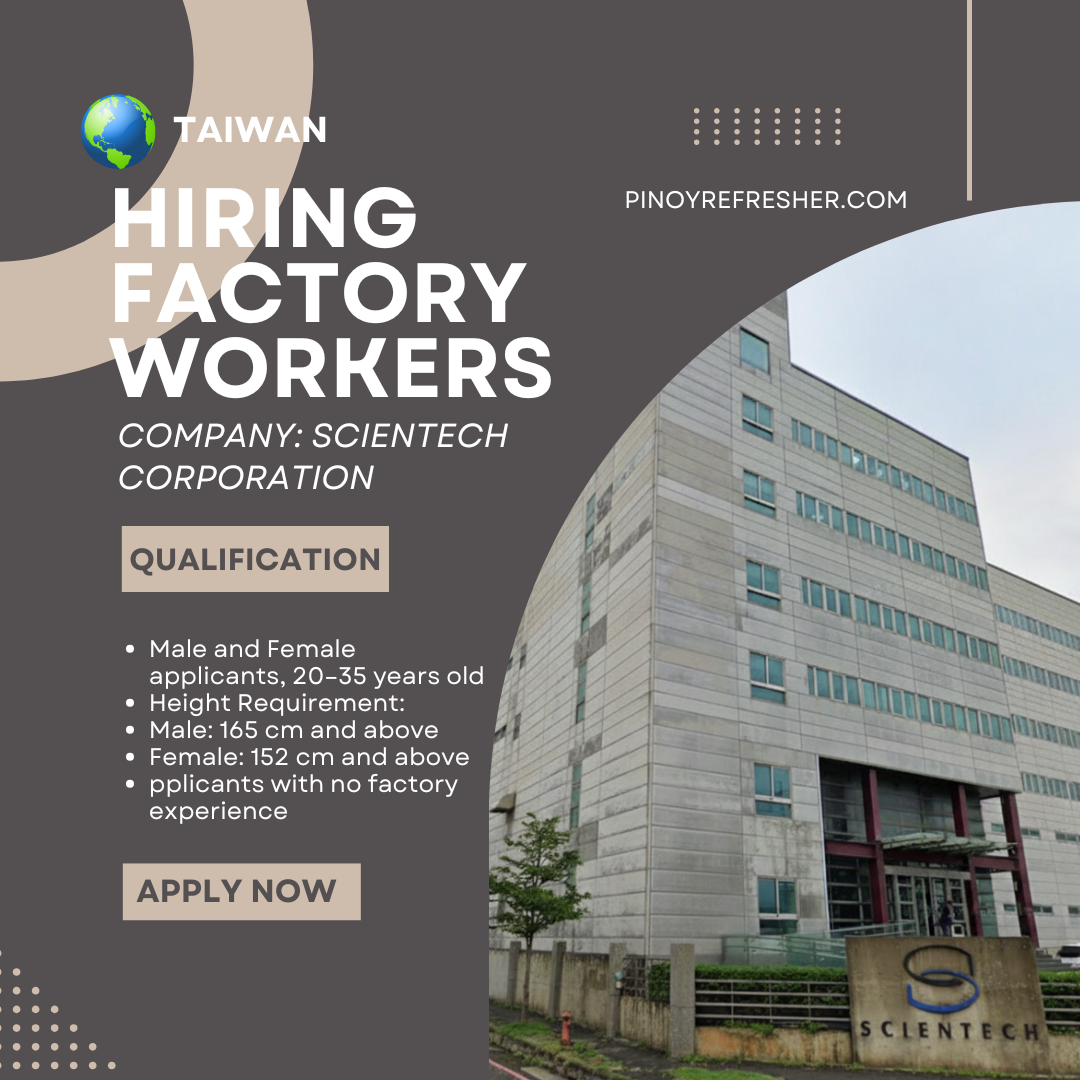 πΉπΌ URGENT HIRING: FACTORY OPERATORS β MALE & FEMALE (BOUND TO TAIWAN)