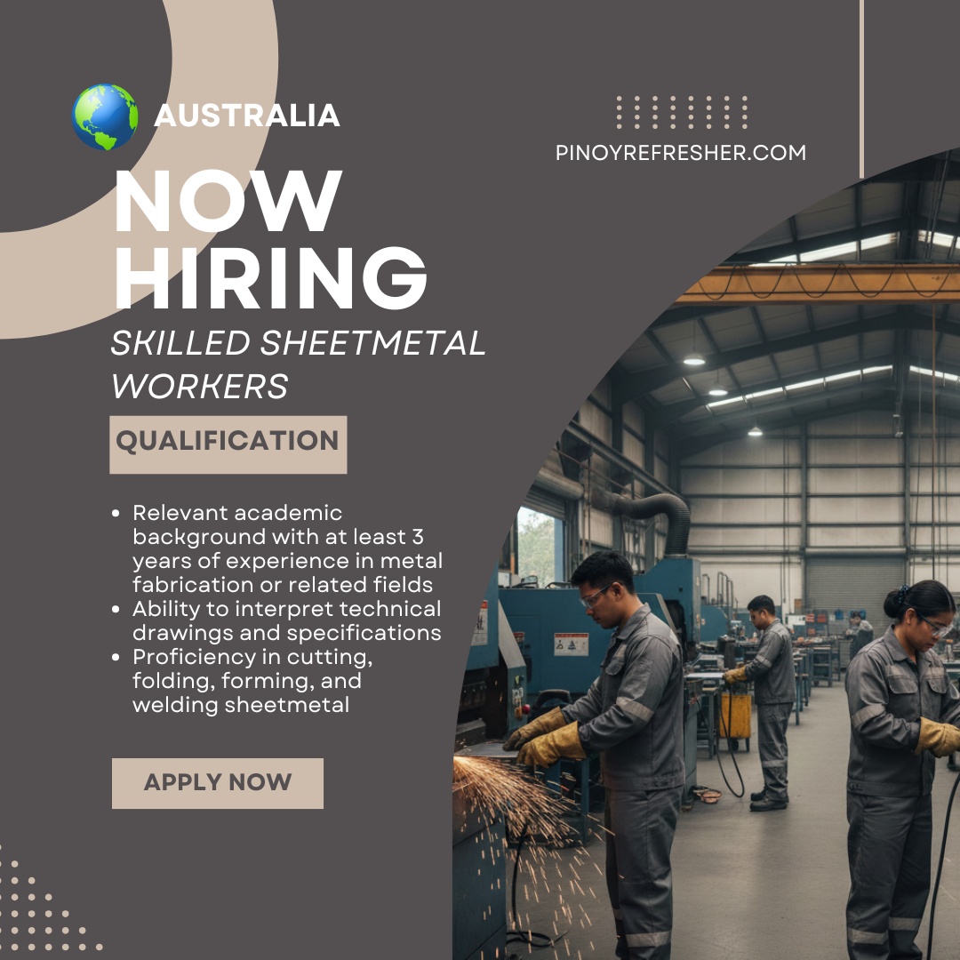 VFG International Placement, Inc. is inviting qualified and experienced Sheetmetal Workers to apply for an opportunity in metal fabrication and manufacturing. This role is part of their manpower pooling initiative to meet the increasing demand for skilled workers in the industry.