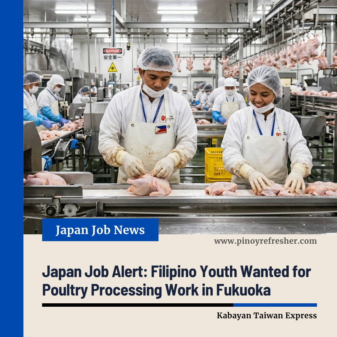 Young Filipino males have a new overseas opportunity as a reputable employment agency opens applications for poultry processing positions in Japan under the Technical Intern Trainee Program (TITP). This program offers competitive pay, free Japanese language training, and valuable international work experience.