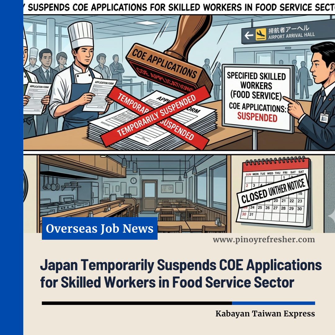 The Immigration Services Agency of Japan has announced a temporary suspension of Certificate of Eligibility (COE) applications for Skilled Workers (SSW) in the Food Service Sector, effective April 13, 2026. This move comes amid a growing influx of foreign workers supporting Japan’s food service industry.