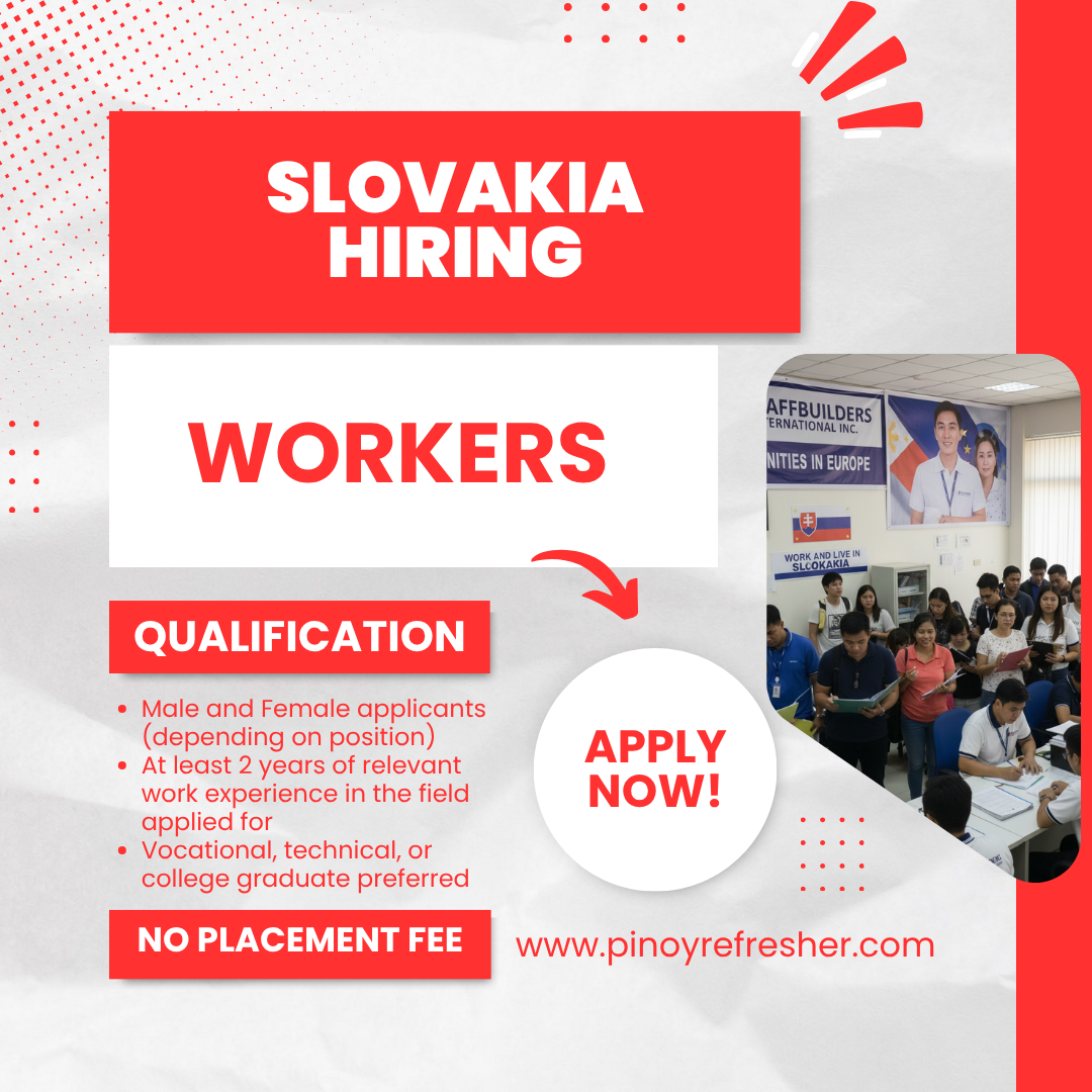 These positions are offered under reputable Slovakian companies in the automotive, production, manufacturing, and technical sectors, providing safe, stable, and rewarding opportunities for Filipino workers seeking employment in Europe.