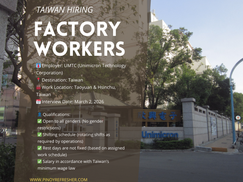 Please note that the placement fee for this opportunity is regulated under DMW (POEA) guidelines and will not exceed the allowable maximum limit.
