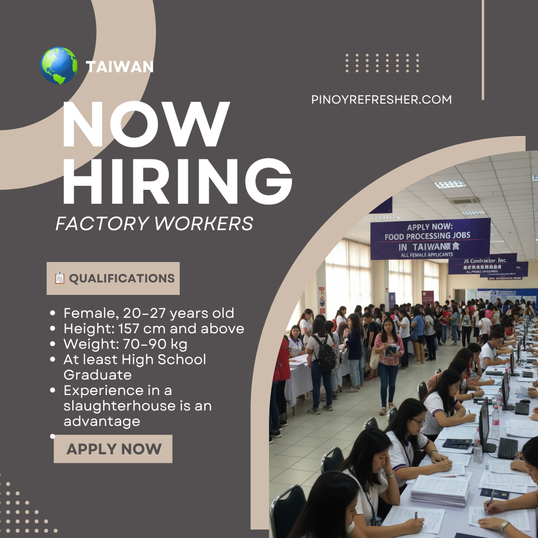 🇹🇼 HIRING FEMALE FACTORY WORKERS FOR TAIWAN!
