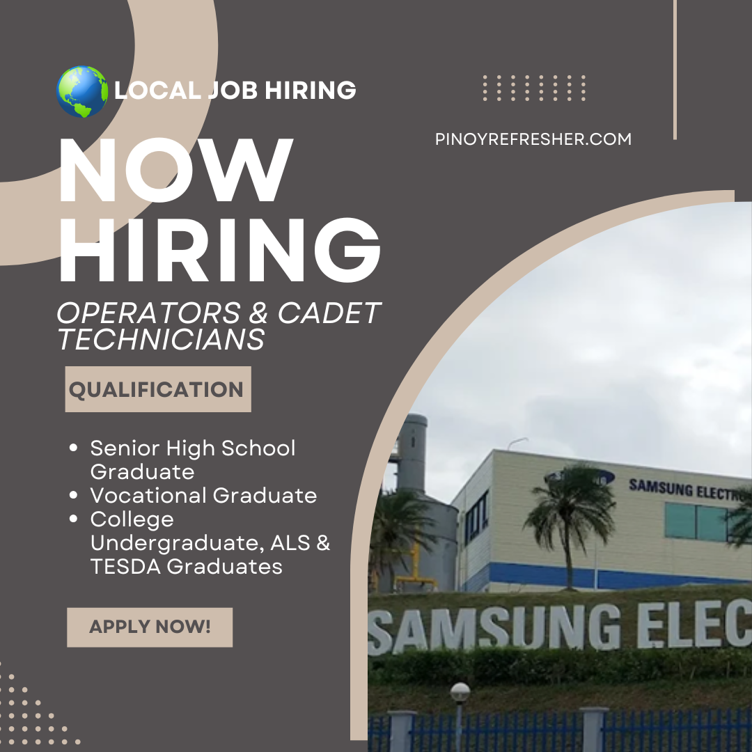 Job Opportunity: Walk-In Hiring for Operators & Cadet Technicians at Samsung Electro-Mechanics Philippines Corporation
