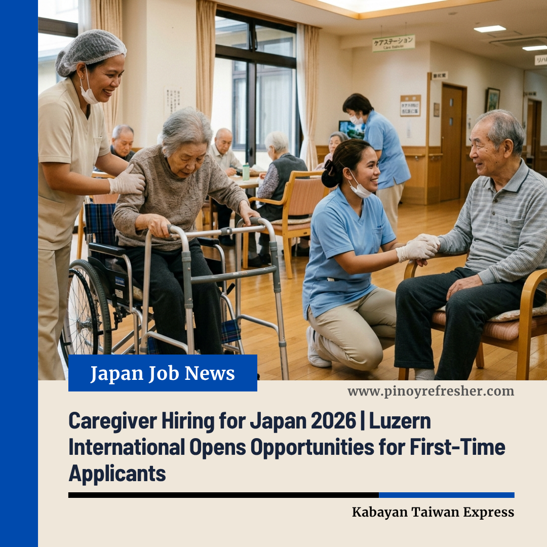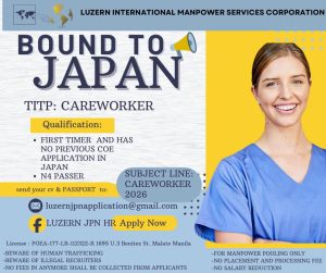 ๐Ÿ“ข Filipino workers seeking opportunities abroad can now apply as Luzern International Manpower Services Corporation announces its latest recruitment drive for caregivers bound for Japan.